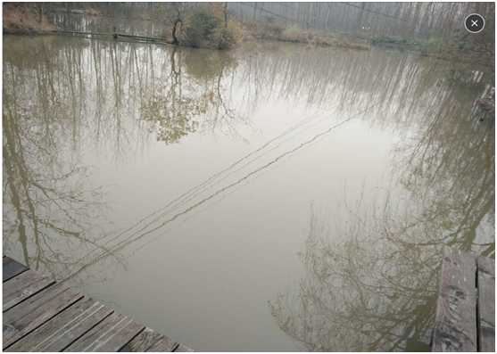 2.二號(hào)水域:水面鐵銹狀物質(zhì)基本消除,透明度40cm。