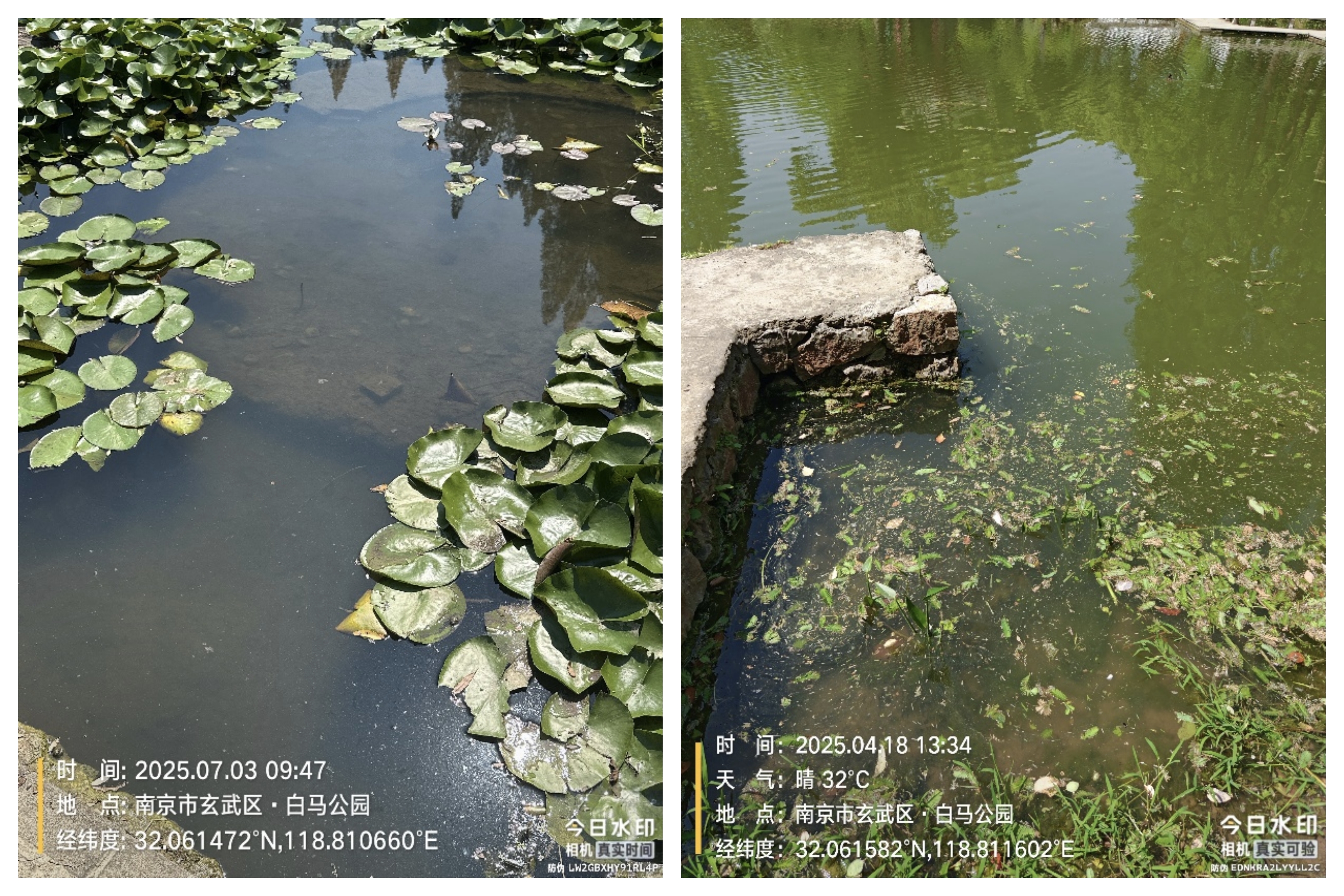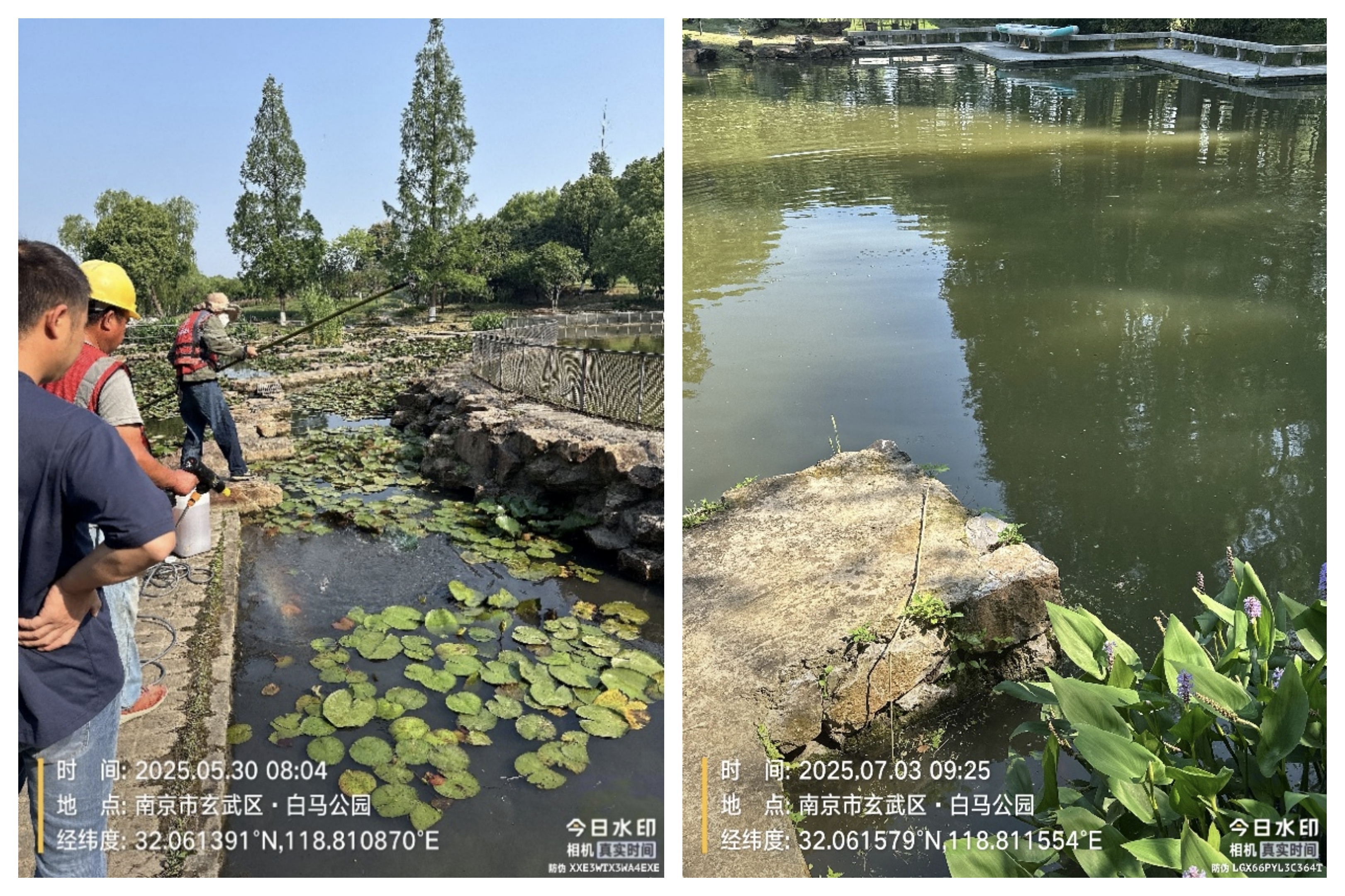 在鐘山風景區的蔥蘢懷抱中,玄武區白馬公園的白馬湖曾悄然蒙塵。這片51.6畝的水域,由低洼水塘拓展而生,二十余載歲月里,流動的韻律日漸遲滯,水華滋蔓,感官蒙翳,仿佛明珠失卻了靈動光華。