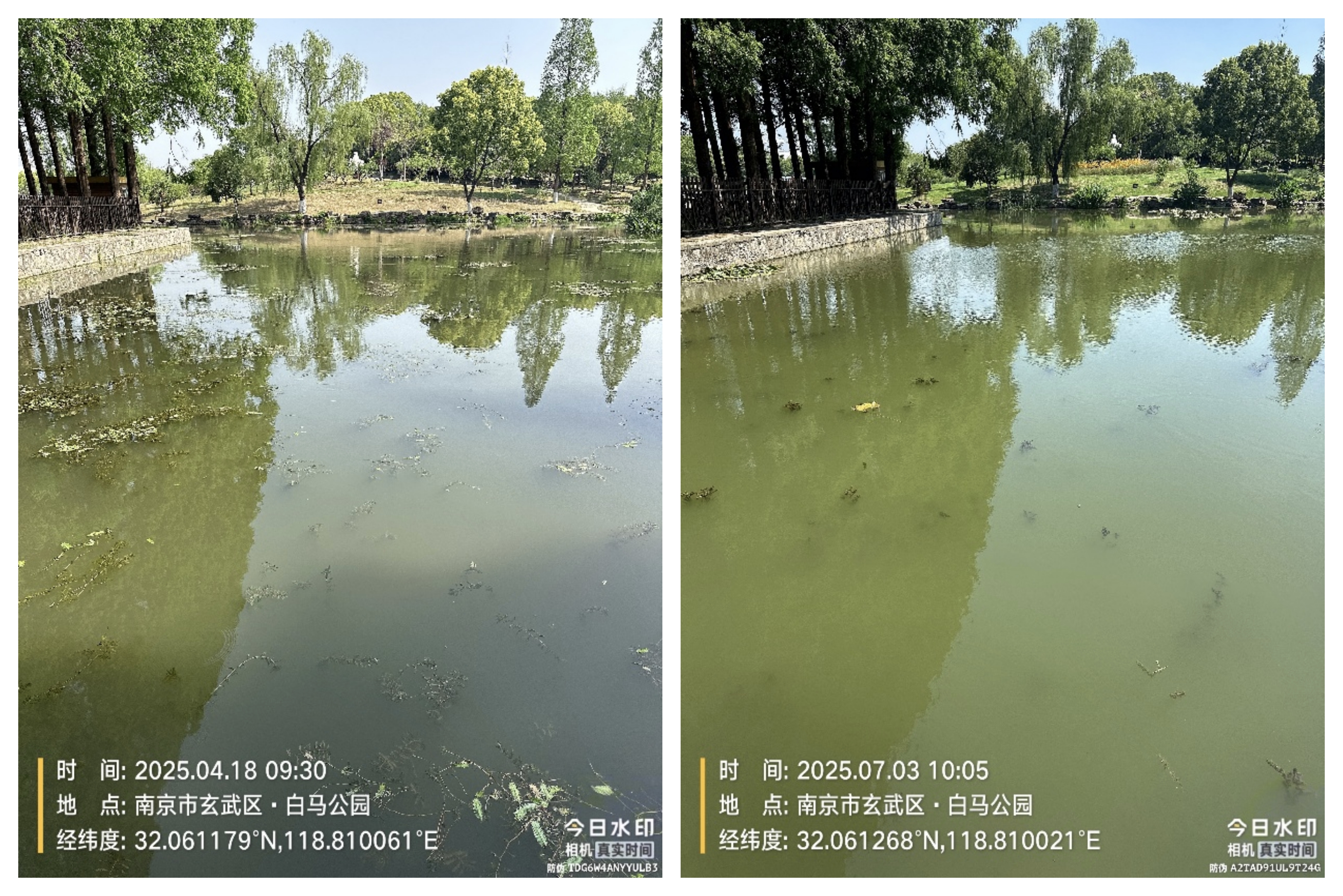 2025年4月,南京蓋亞生物工程有限公司攜自主創新的RhP生態修復體系,踏入這片亟待復蘇的水域,開啟了一場靜水深流的生態煥新之旅。短短數月間,科技與自然的協奏曲,奏響了令人驚嘆的華章!